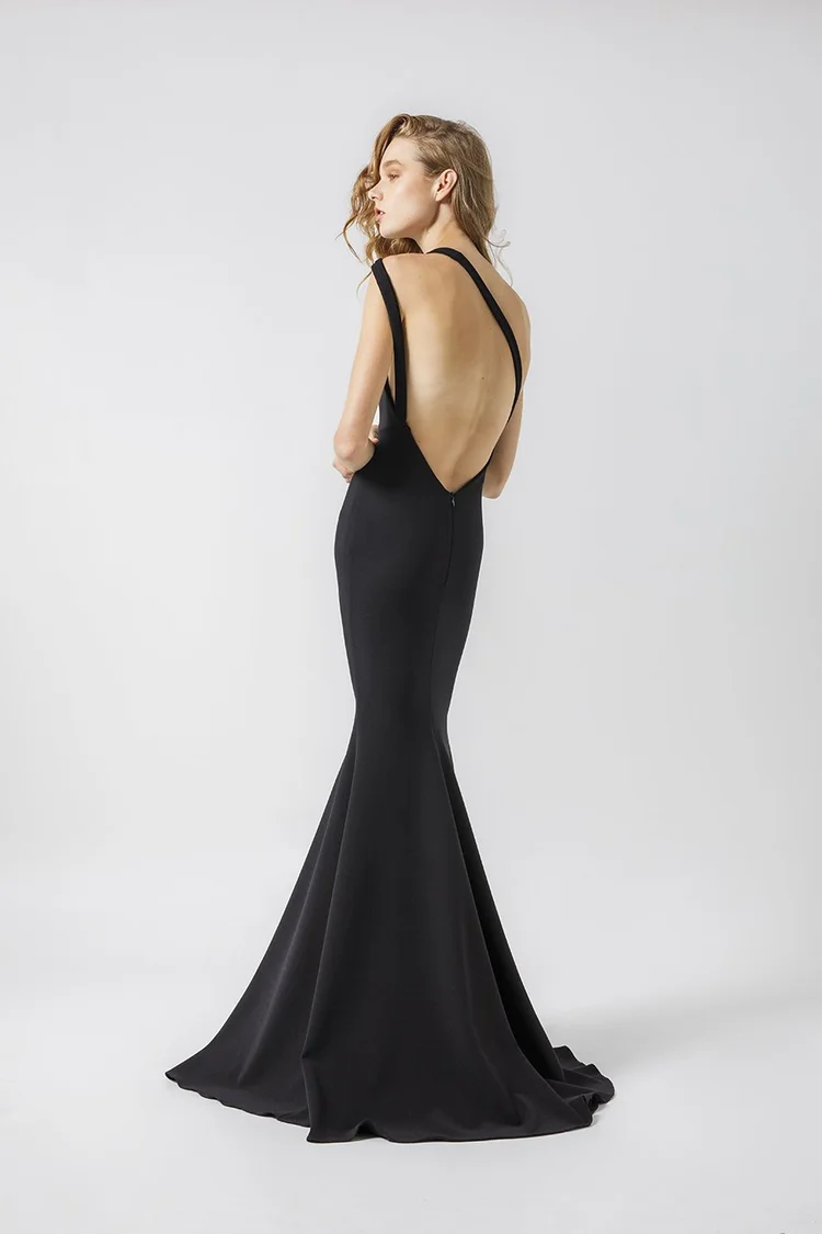 Axis is a black, one-shoulder mermaid gown in stretchy jersey that sculpts and defines with effortless grace. Backless and sleek, its elegant lines flow seamlessly, creating a timeless, refined silhouette. A classic signature design from Krzysztof, Axis embodies understated sophistication and enduring style.